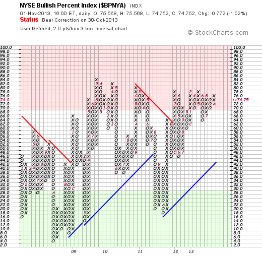 Attached is the NYSE Bullish Percent Index and the NYSE long, medium and short term moving average breadth charts.