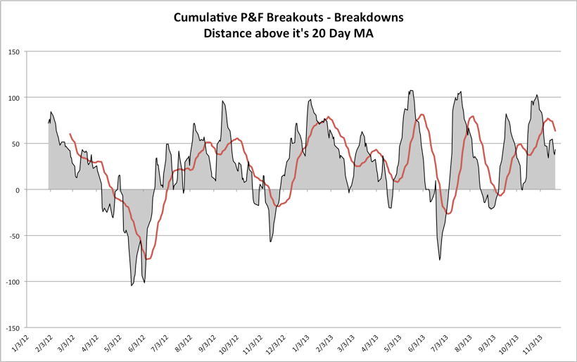 S&P 500 Cumulative P&F Breakouts - Breakdowns