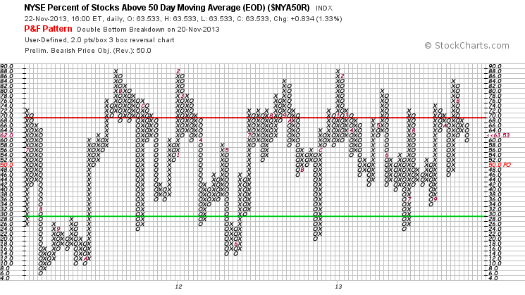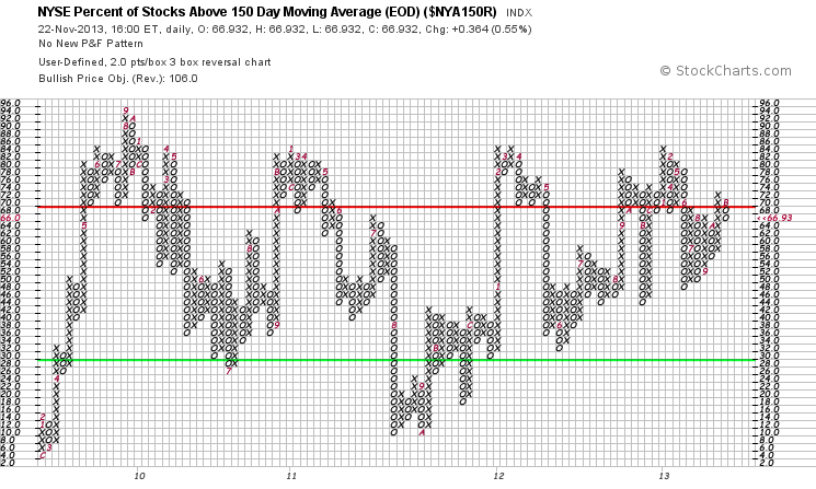 NYSE Percentage of Stocks above their 200 Day, 150 Day and 50 Day Moving Averages P&F charts