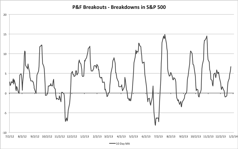 S&P 500 Cumulative P&F Breakouts - Breakdowns