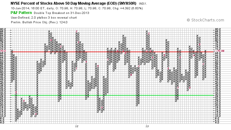 NYSE Percentage of Stocks above their 200 Day, 150 Day and 50 Day Moving Averages P&F charts