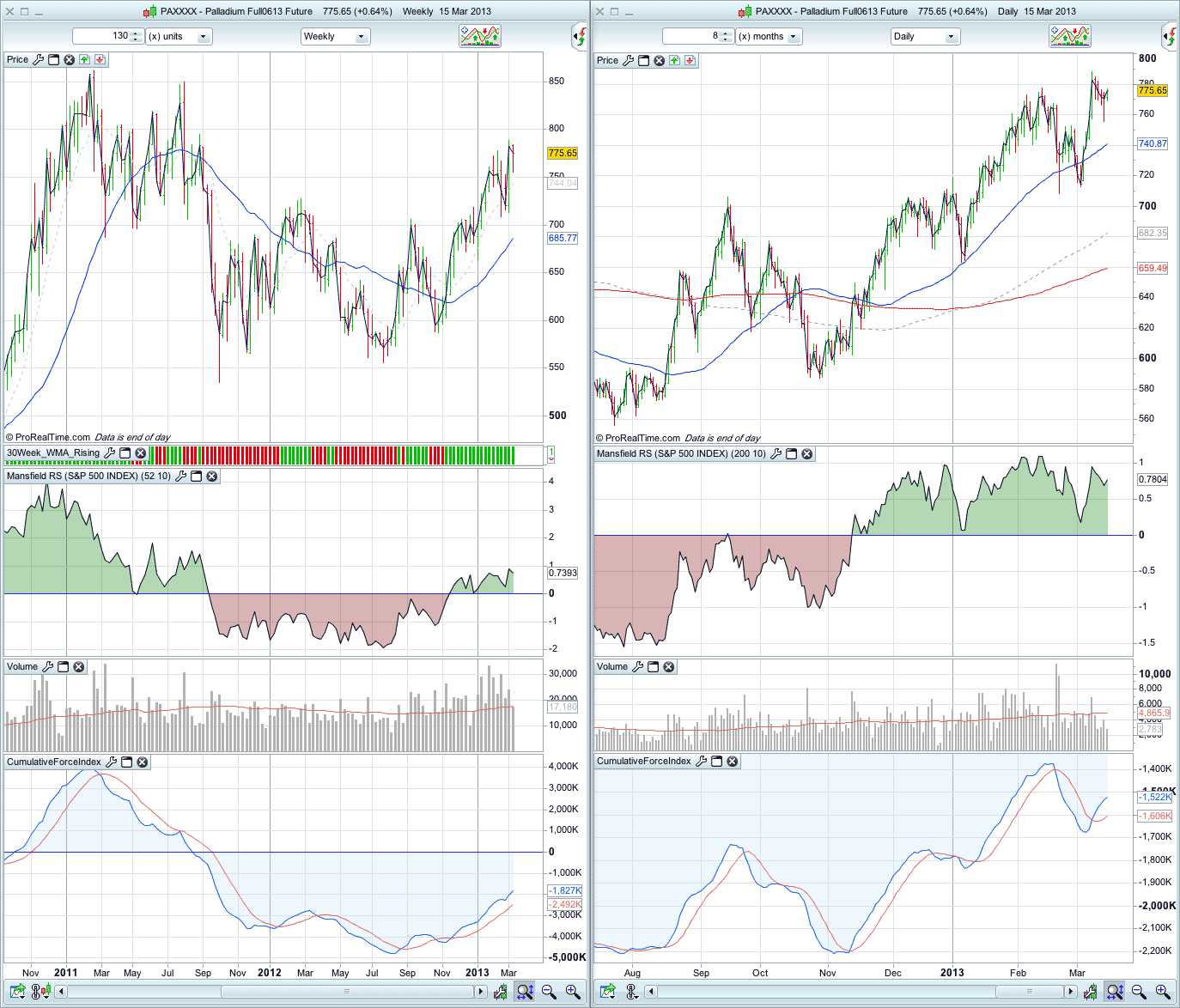 Attached is the updated major commodities and precious metals charts, Gold (GC), Silver (SI), Palladium (PA), Copper (HG) and West Texas Intermediate Crude (CL).