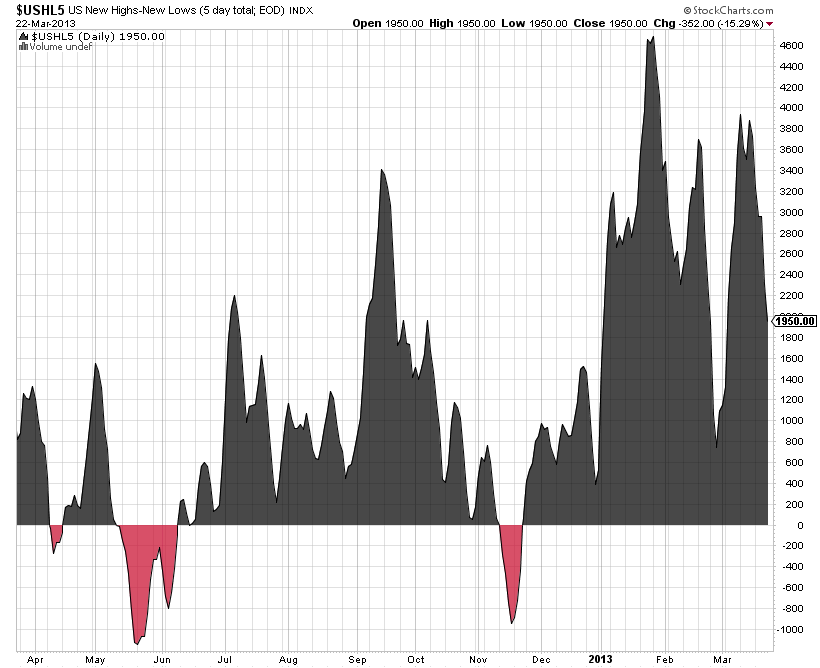Attached is the New Highs / New Lows set of charts which slowed a bit this week, but there's no major changes to be aware of yet. New lows finished the week at only 14, so until this picks up these remain on the bullish side imo.