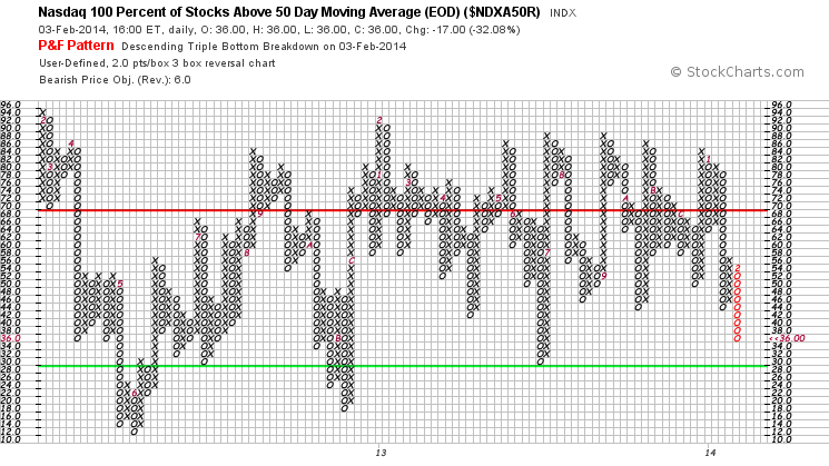 The sector breadth charts that I make for the elite members is created by scanning the entire US market for all the stocks above their 150 day moving averages in each sector with a market cap of over 50million. I then do the same scan for stocks below their 150 day moving averages in each sector and create the percentages for each sector to put on the weekly charts. This covers over 4500 stocks in the NYSE and Nasdaq and so is much broader than the NYSE Percentage of Stocks above their 150 day Moving Averages chart ($NYA150R) that I post each week as it includes stocks from the Nasdaq as well, and so is around twice the sample size.