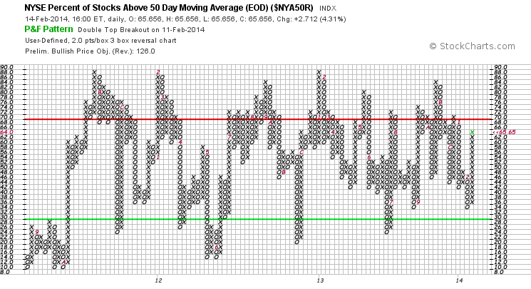 NYSE Percentage of Stocks above their 200 Day, 150 Day and 50 Day Moving Averages P&F charts