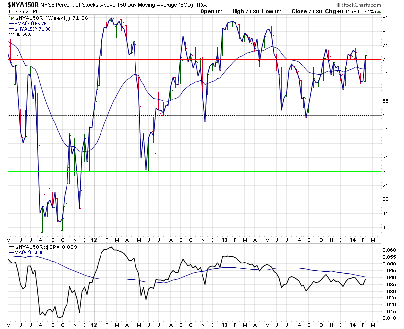 NYSE Percentage of Stocks above their 200 Day, 150 Day and 50 Day Moving Averages line charts