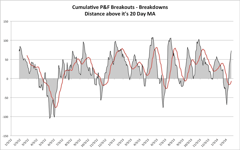 S&P 500 Cumulative P&F Breakouts - Breakdowns