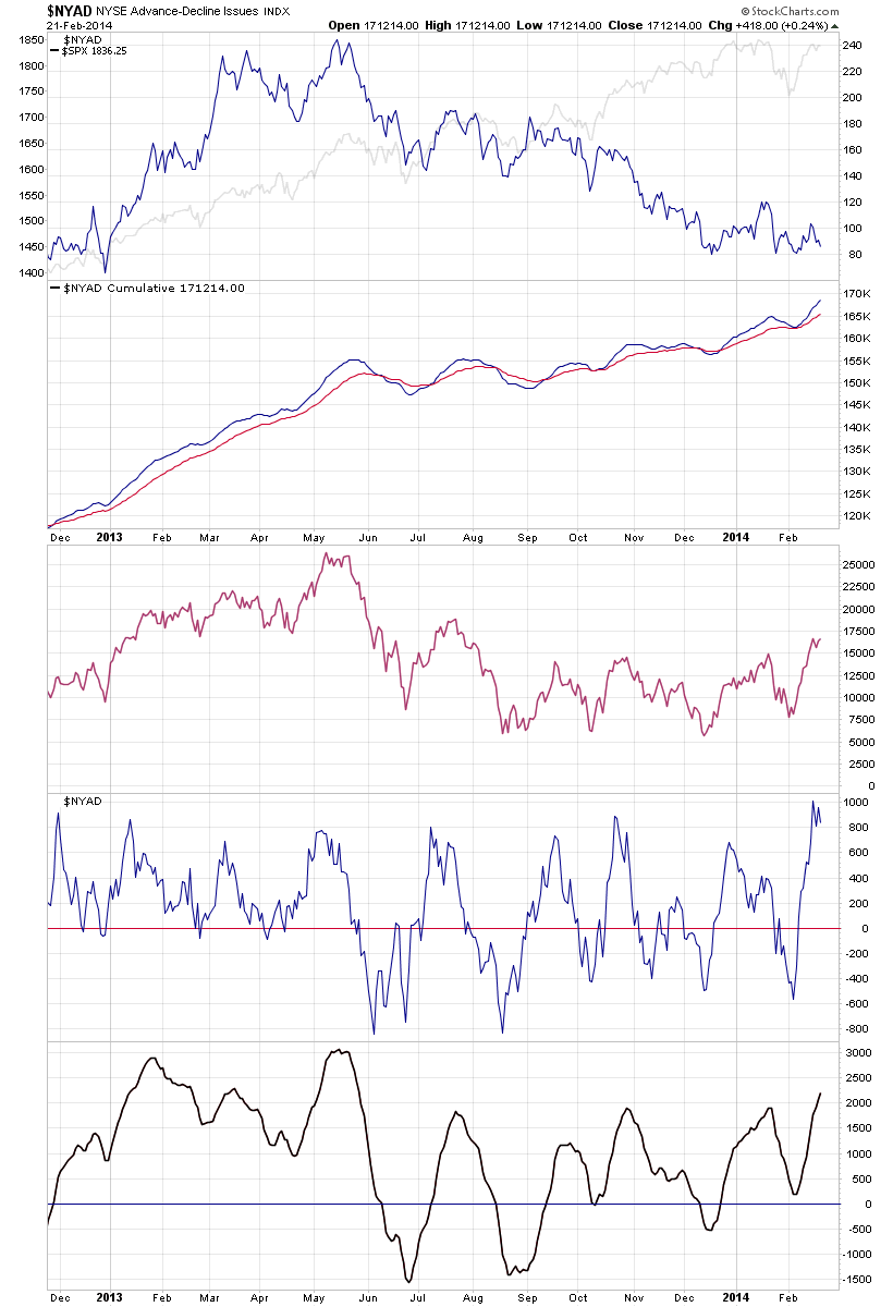 Attached is the updated Advance Decline Breadth Charts, including the cumulative AD line, momentum index, cumulative AD volume line, 10 Day AD oscillator and the McClellan Oscillator and Summation Index.