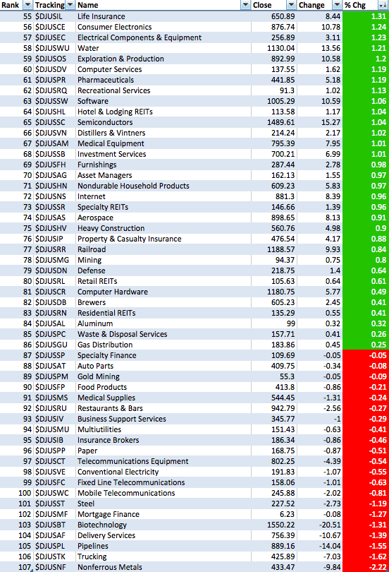 Dow Jones US Sub Sectors Performance