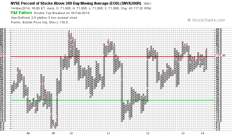 NYSE Percentage of Stocks above their 200 Day, 150 Day and 50 Day Moving Averages P&F charts