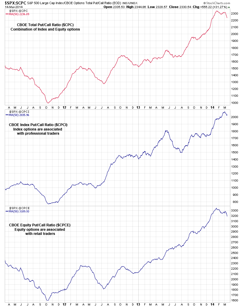 Attached is the updated S&P 500 / Index and Equity Options Ratio charts