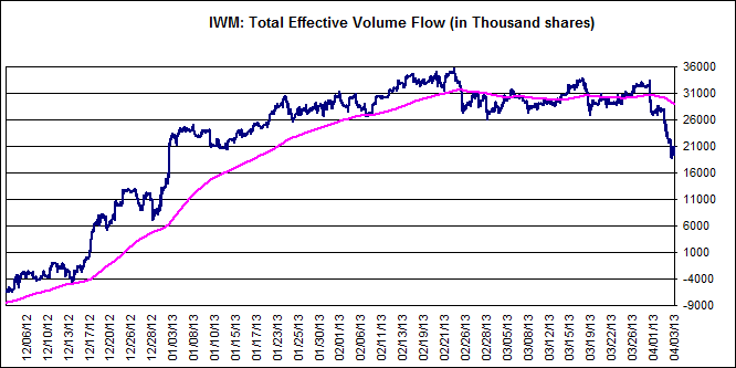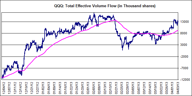 The S&P 500 etf (SPY) and Russell 2000 Small Caps etf (IWM) Effective Volume charts have broken down from their recent sideways range. The Russell 2000 Small Caps (IWM) is seeing the most notable selling this week breaking strongly below it's two month range. Whereas the Nasdaq 100 etf (QQQ) has broken out to the upside from it's one month range. To see the regularly updated charts go to: http://www.effectivevolume.com