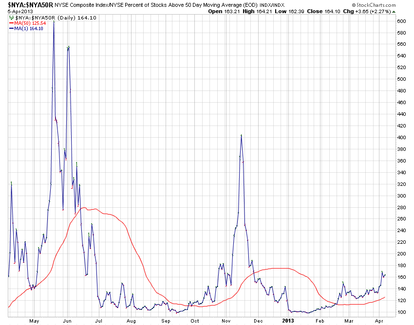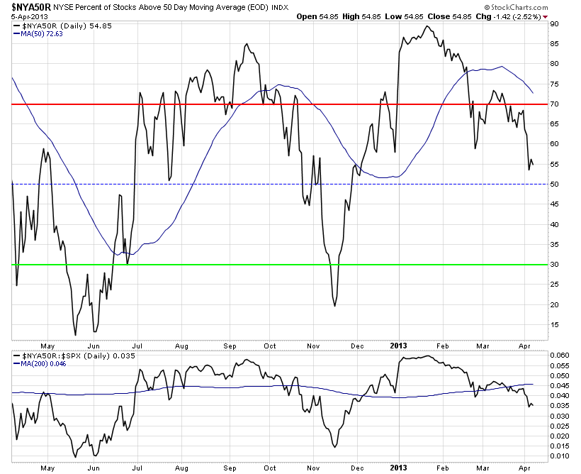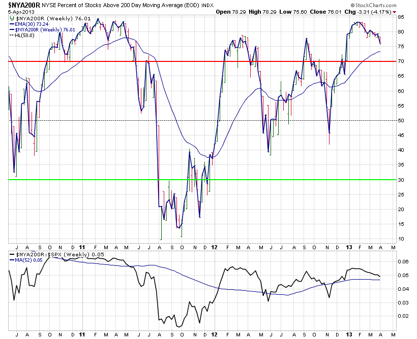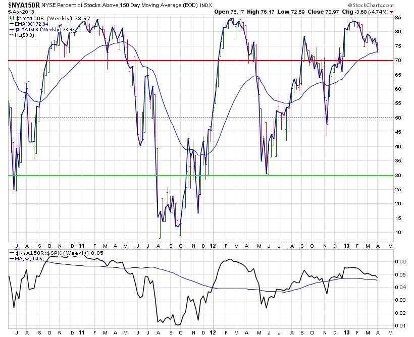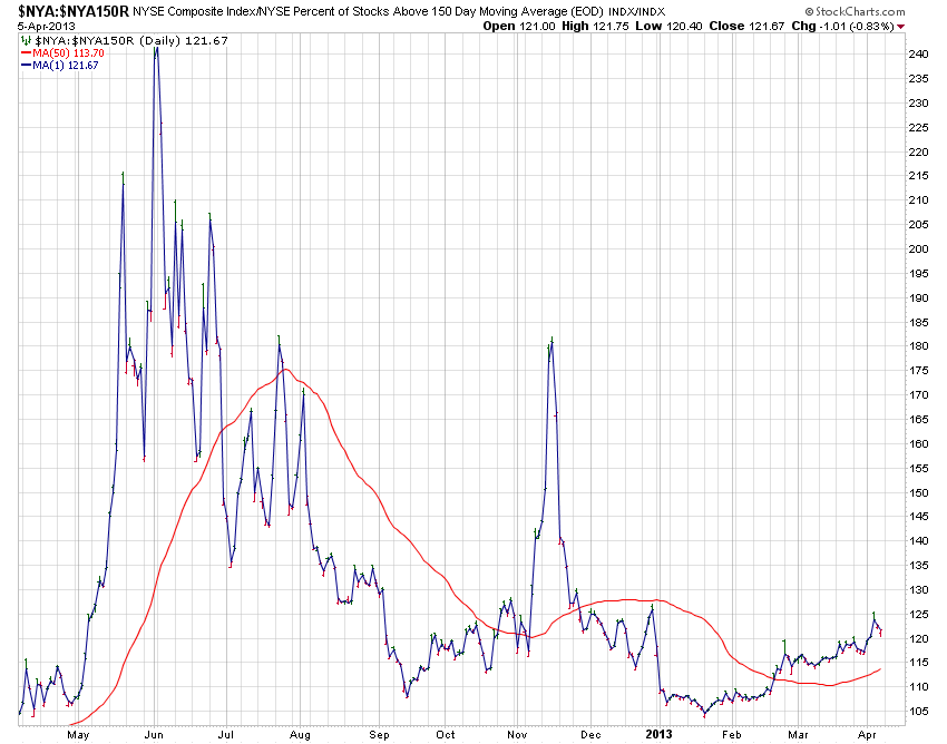 Attached is the NYSE long, medium and short term moving average breadth charts and the NYSE Bullish Percent Index.