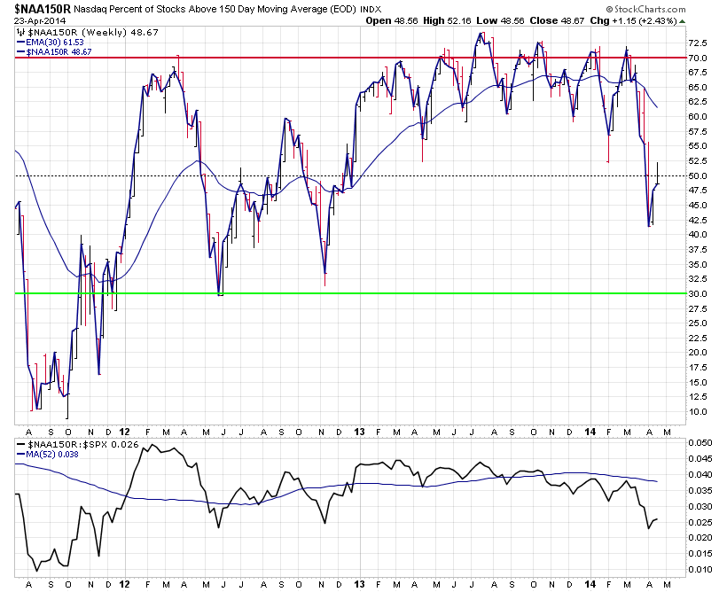 I normally only show the NYSE breadth charts on the weekly updates, so get a view of a different part of the market here's a few of the Nasdaq breadth charts, which are in showing a lot more weakness than the NYSE charts.