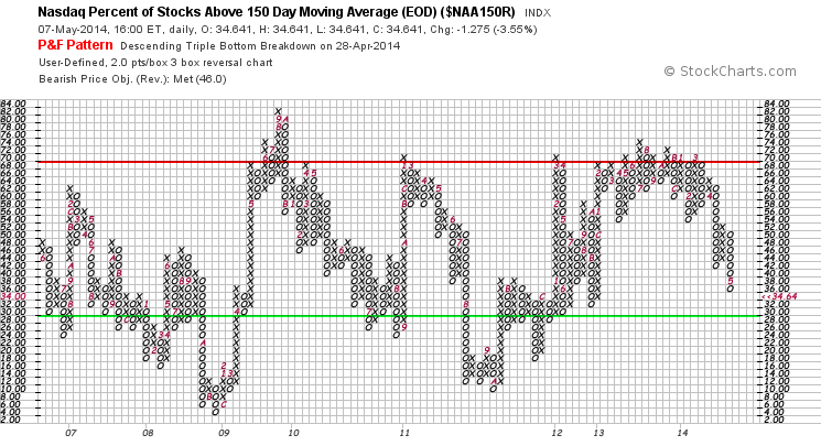 Nasdaq Percentage of Stocks above their 200 Day, 150 Day and 50 Day Moving Averages P&F charts
