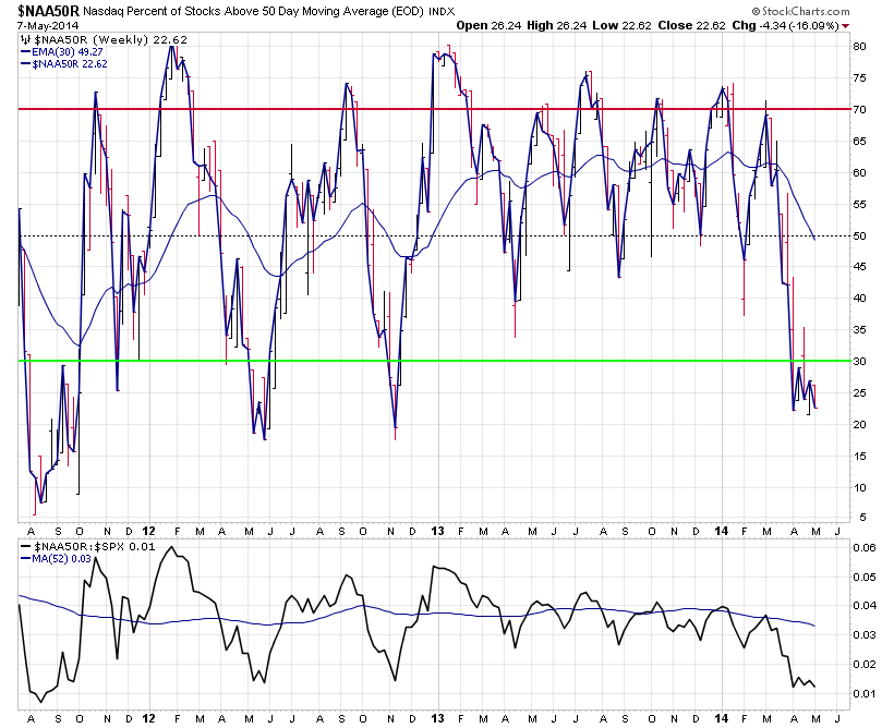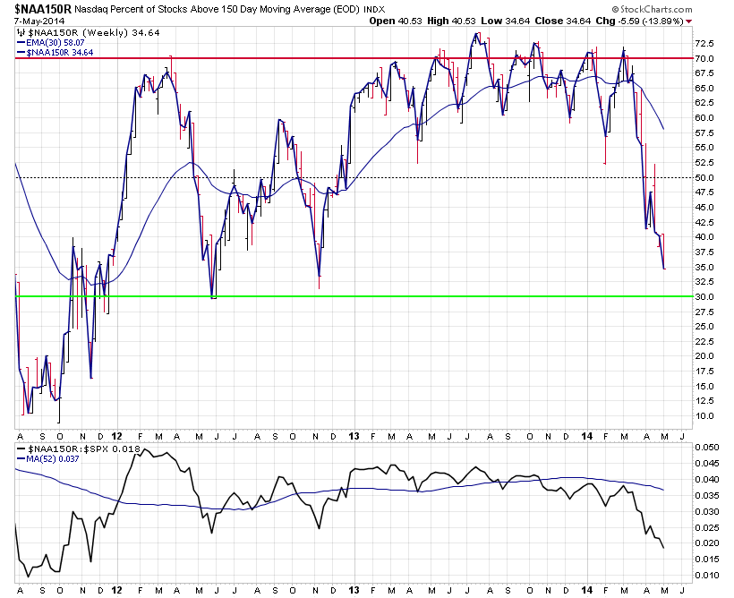 Nasdaq Percentage of Stocks above their 200 Day, 150 Day and 50 Day Moving Averages line charts