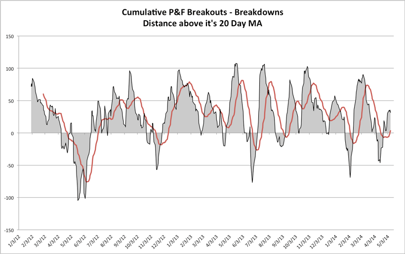 S&P 500 Cumulative P&F Breakouts - Breakdowns