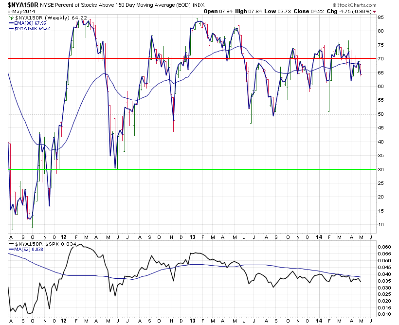 NYSE Percentage of Stocks above their 200 Day, 150 Day and 50 Day Moving Averages line charts