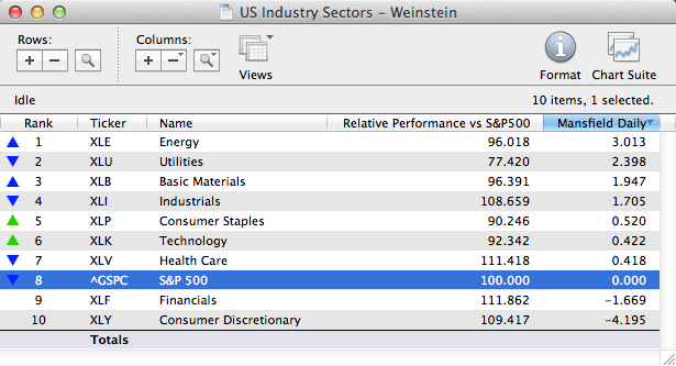 Attached is the US Sub Sectors ordered by the weekly percentage change. To see the full list sectioned by major sector, with links through to individual stocks in each sector, go to: http://stockcharts.com/freecharts/indust...ECTOR_SPDR