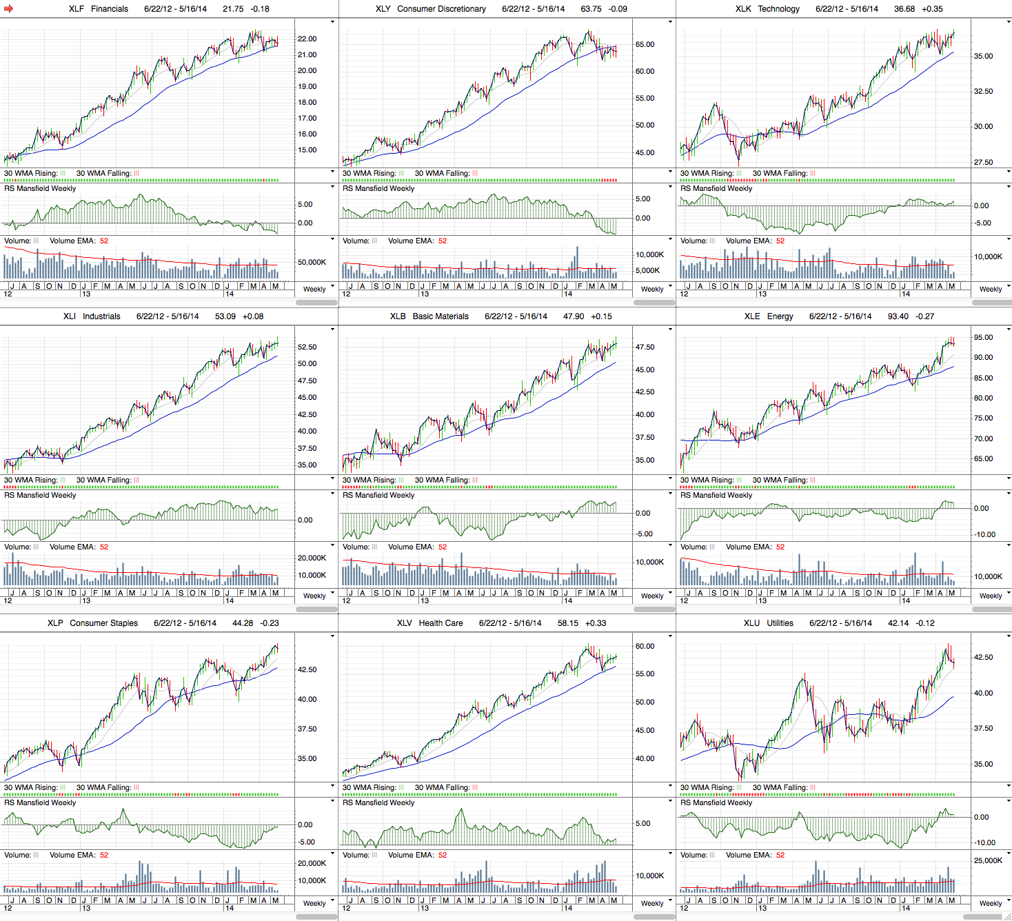Attached is the US Sub Sectors ordered by the weekly percentage change. To see the full list sectioned by major sector, with links through to individual stocks in each sector, go to: http://stockcharts.com/freecharts/indust...ECTOR_SPDR