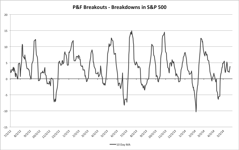 S&P 500 Cumulative P&F Breakouts - Breakdowns