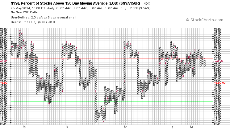 NYSE Percentage of Stocks above their 200 Day, 150 Day and 50 Day Moving Averages P&F charts