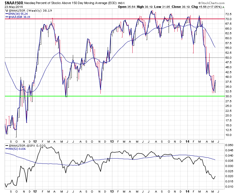 Nasdaq Percentage of Stocks above their 200 Day, 150 Day and 50 Day Moving Averages line charts