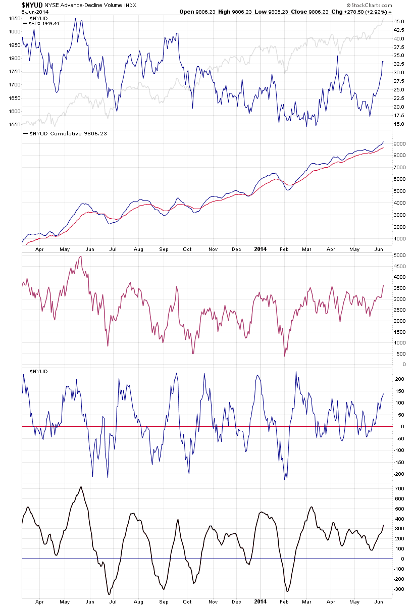 Fate does not always let you fix the tuition fee. She delivers the educational wallop and presents her own bill - Reminiscences of a Stock Operator. Advance Decline Breadth ChartsAttached is the updated Advance Decline Breadth Charts, including the cumulative AD line, momentum index, cumulative AD volume line, 10 Day AD oscillator and the McClellan Oscillator and Summation Index.