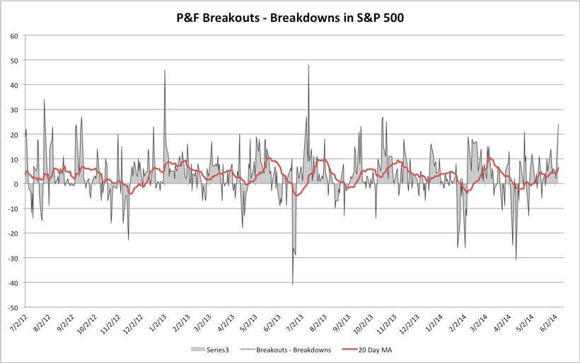 Fate does not always let you fix the tuition fee. She delivers the educational wallop and presents her own bill - Reminiscences of a Stock Operator. S&P 500 Cumulative P&F Breakouts - BreakdownsAttached is the exclusive S&P 500 Cumulative P&F Breakouts - Breakdowns charts.