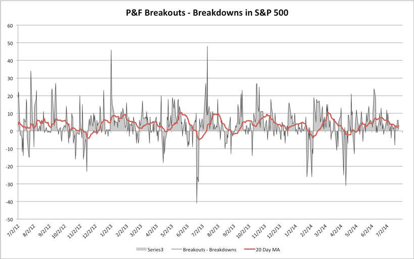 S&P 500 Cumulative P&F Breakouts - Breakdowns
