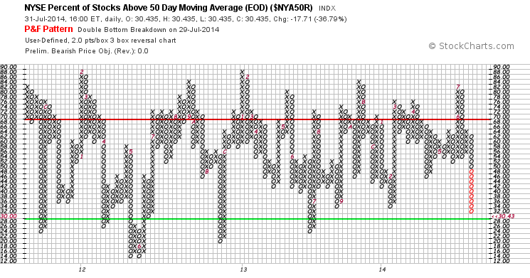 Fate does not always let you fix the tuition fee. She delivers the educational wallop and presents her own bill - Reminiscences of a Stock Operator. RE: Stan Weinstein's Stage Analysis(2014-07-29, 04:49 PM)isatrader Wrote: Part 1 of the Stage Analysis Study Guide - Questions and Answers is now available to view, which gives you a number of detailed questions and answers to work through to help you learn Stan Weinstein's Stage Analysis method. Enjoy! I have not seen this thread before. Looking forward to going through this thread when I get home tonight. NYSE Market Breadth UpdateToday has seen some damage across the board on the NYSE Bullish Percent and the NYSE Moving Average breadth charts, with the Bullish Percent reversing to a column of Os and through the key 70% level, which moves the status to Bear Alert. i.e. the market has the ball in it's half of the field.