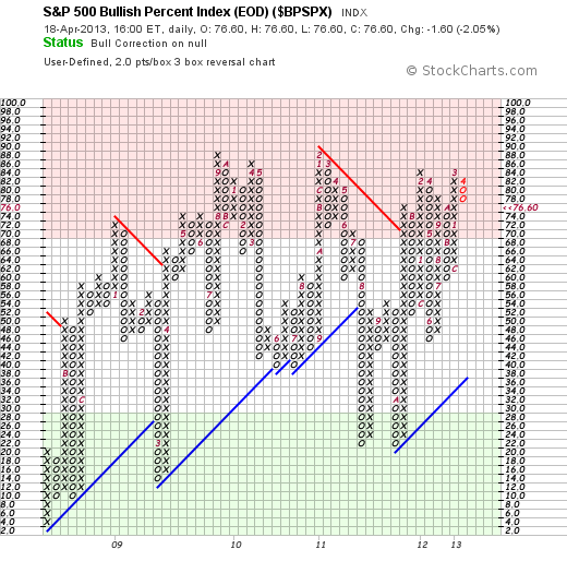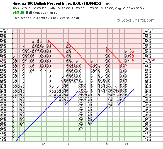 Two more of the major Bullish Percent Indexes have reversed to a column of Os. The S&P 500 Bullish Percent ($BPSPX) and the Nasdaq 100 Bullish Percent ($BPNDX) - which means all four of the major Bullish percents are now on defense.