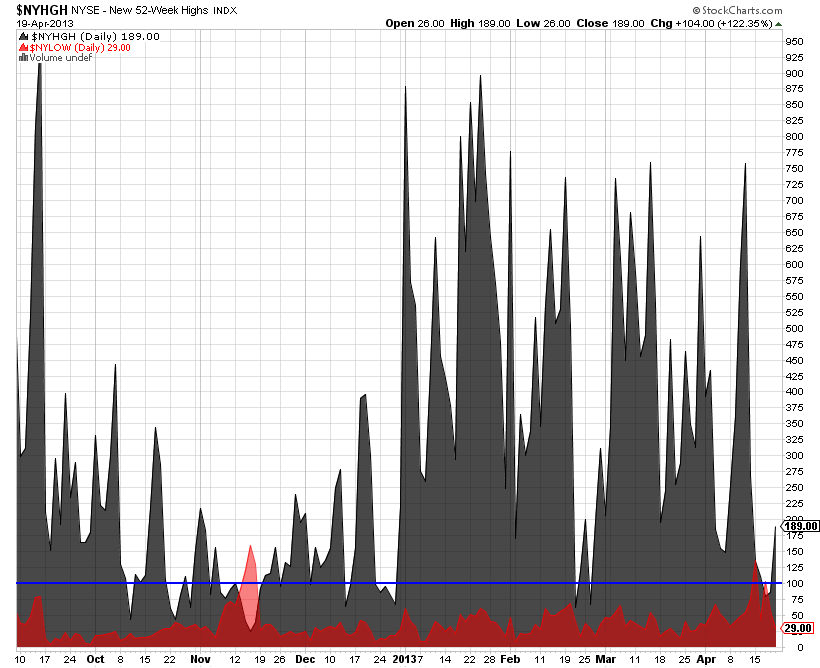 On the cumulative chart, the cumulative line has flattened and the 50 day MA of New Highs minus New Lows continued lower, and even the 200 day MA of the New Highs minus New Lows fattened out a bit. And so the New Highs New Lows charts are in neutral territory currently on Bear Alert imo.
