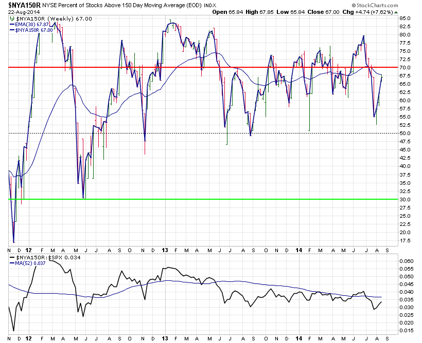 NYSE Percentage of Stocks above their 200 Day, 150 Day and 50 Day Moving Averages line charts