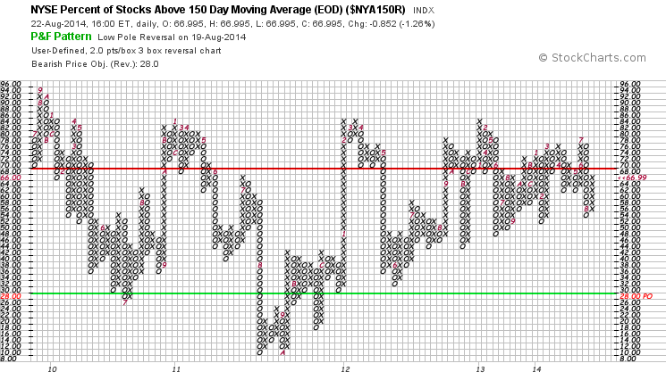The purpose of the market breadths charts is to try and follow the "Weight of Evidence" approach that Weinstein does, and so try not to get too focused on any one breadth indicator if it breaks down, while others others are still in a normal range. But if you see multiple indicators giving warning signs at the same time, then it's time to be more defensive and take a look at your individual holdings more closely.