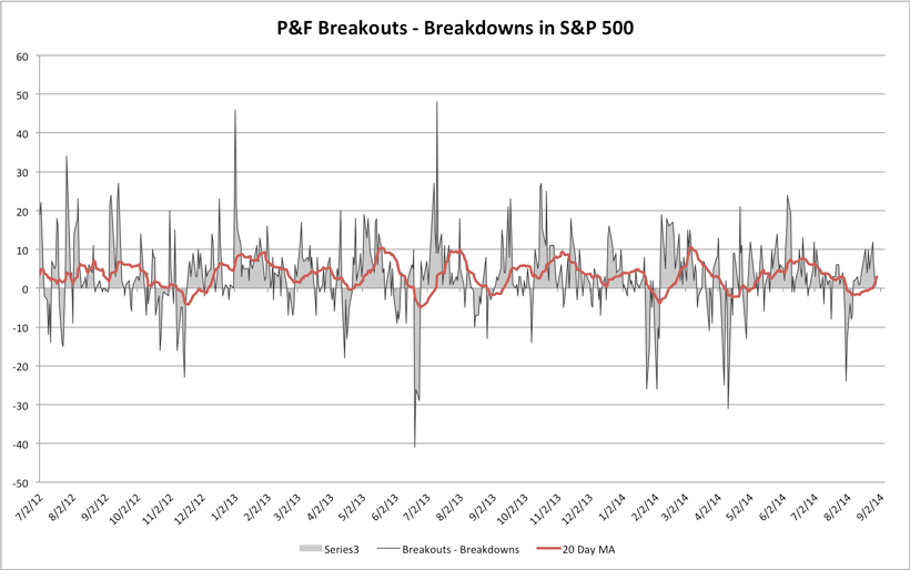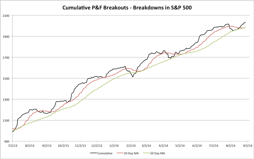 S&P 500 Cumulative P&F Breakouts - Breakdowns