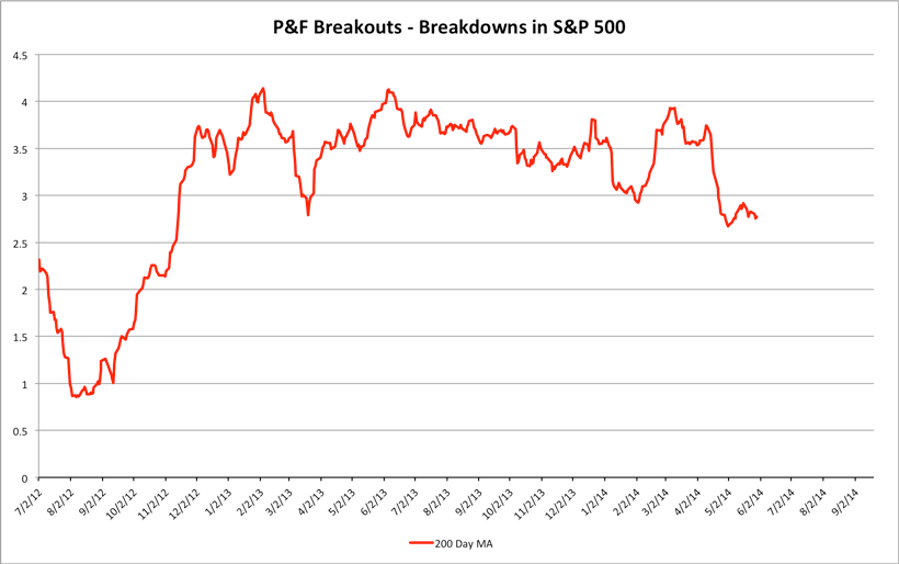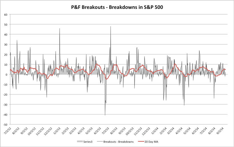 S&P 500 Cumulative P&F Breakouts - Breakdowns
