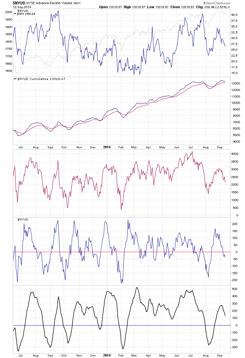 Attached is the updated Advance Decline Breadth Charts, including the cumulative AD line, momentum index, cumulative AD volume line, 10 Day AD oscillator and the McClellan Oscillator and Summation Index.