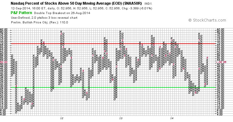 Nasdaq Percentage of Stocks above their 200 Day, 150 Day and 50 Day Moving Averages P&F charts