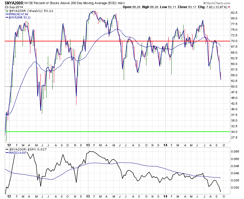 NYSE and Nasdaq Percentage of Stocks above their 200 Day Moving Averages charts