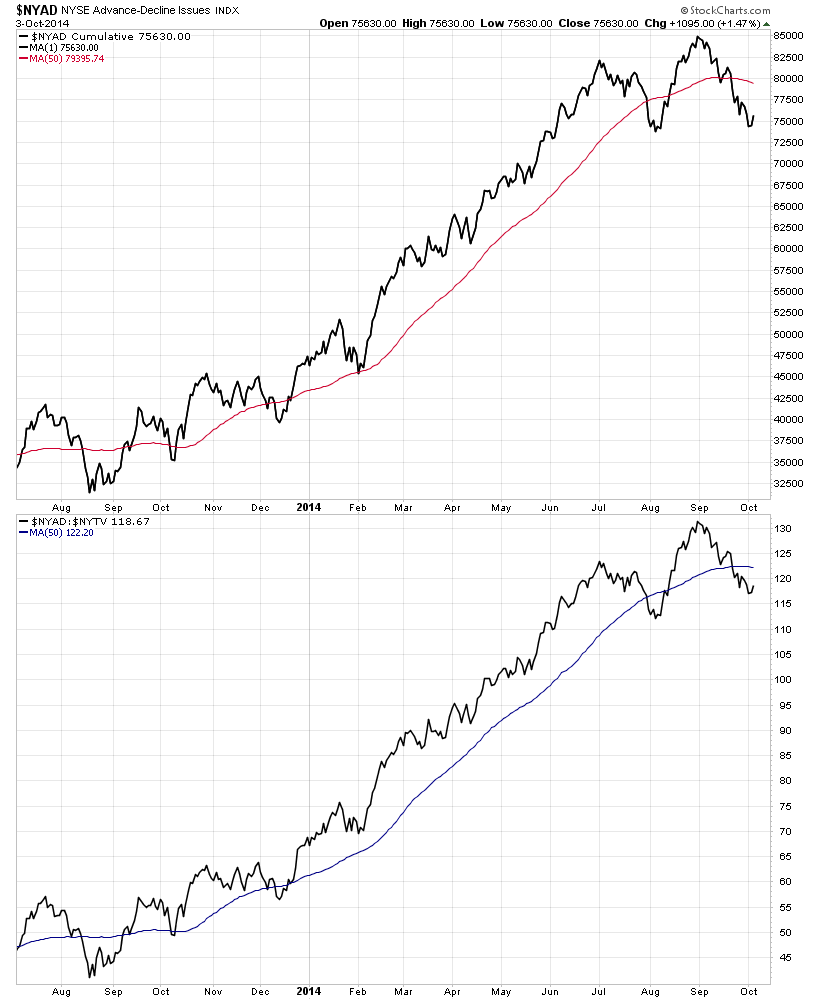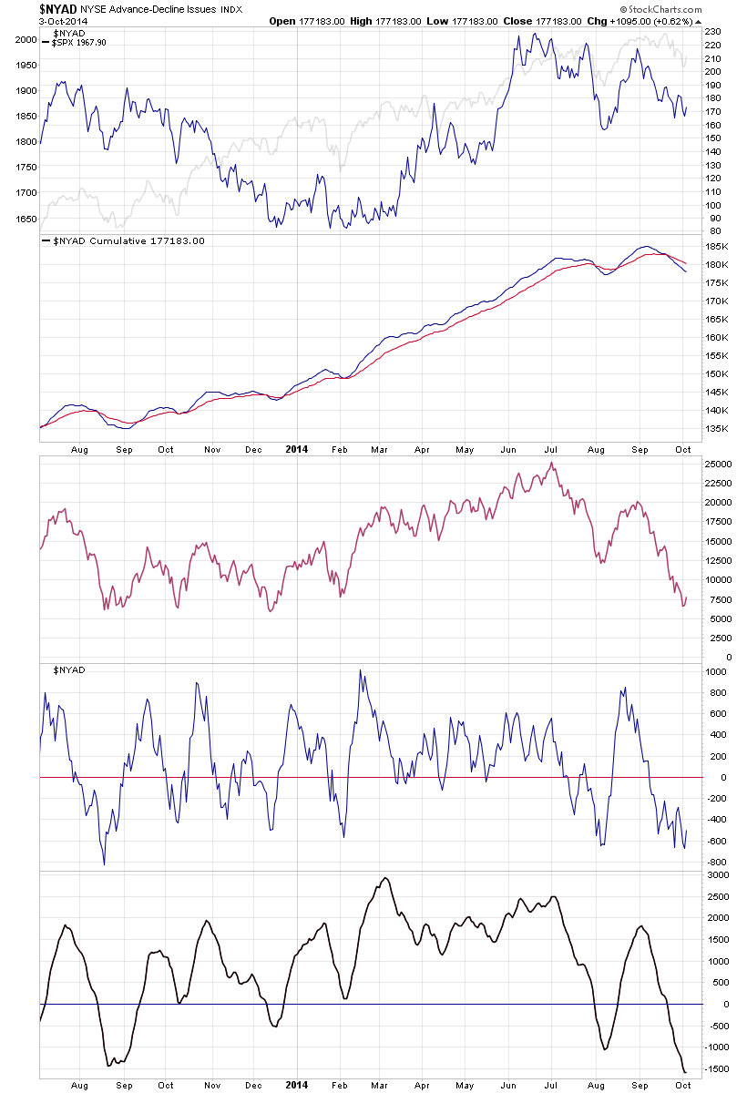 Attached is the updated Advance Decline Breadth Charts, including the cumulative AD line, momentum index, cumulative AD volume line, 10 Day AD oscillator and the McClellan Oscillator and Summation Index.