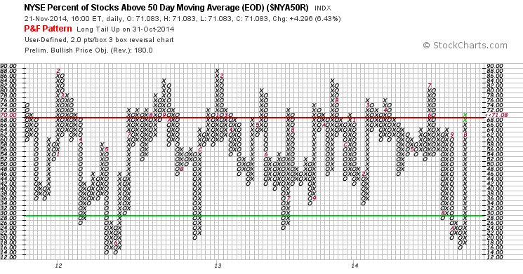 NYSE Percentage of Stocks above their 200 Day, 150 Day and 50 Day Moving Averages P&F charts