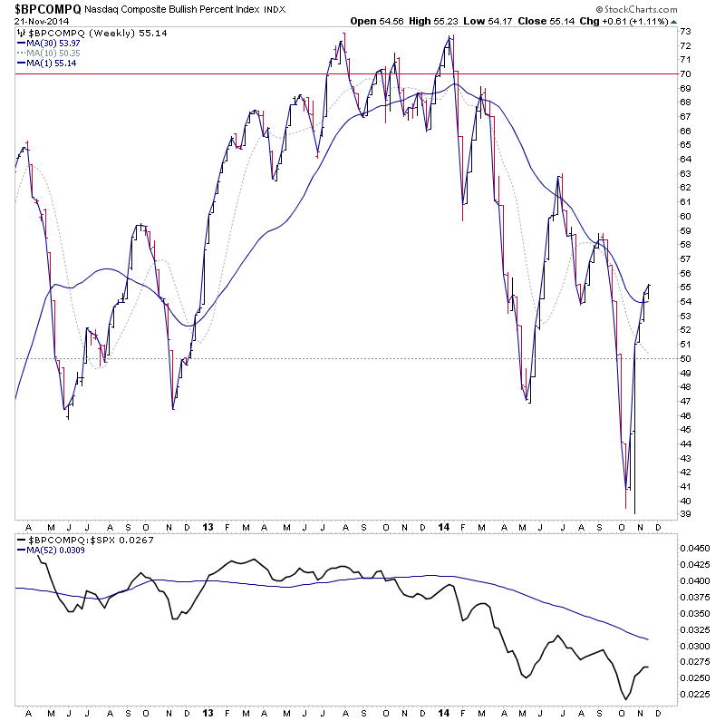 Nasdaq Percentage of Stocks above their 200 Day, 150 Day and 50 Day Moving Averages P&F charts