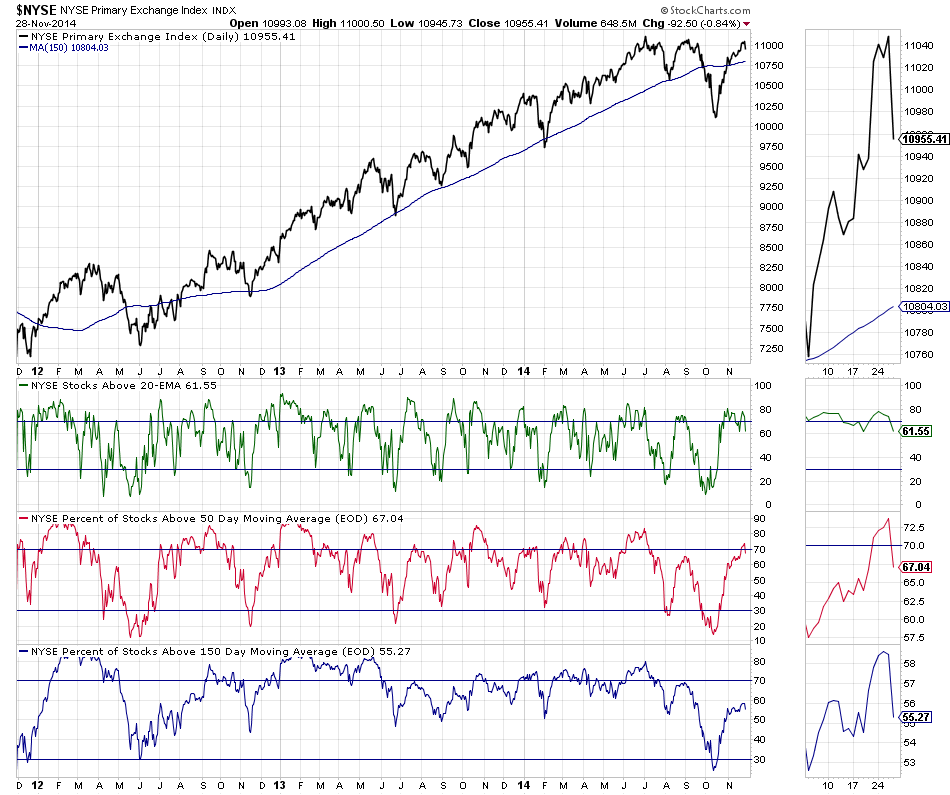 Attached is the NYSE Bullish Percent Index and the NYSE long, medium and short term moving average breadth charts.