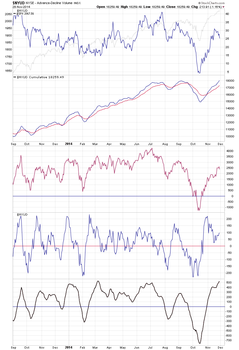 Attached is the updated Advance Decline Breadth Charts, including the cumulative AD line, momentum index, cumulative AD volume line, 10 Day AD oscillator and the McClellan Oscillator and Summation Index.