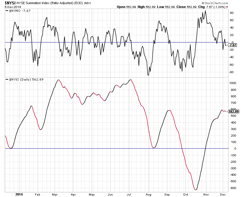 Attached is the updated Advance Decline Breadth Charts, including the cumulative AD line, momentum index, cumulative AD volume line, 10 Day AD oscillator and the McClellan Oscillator and Summation Index.