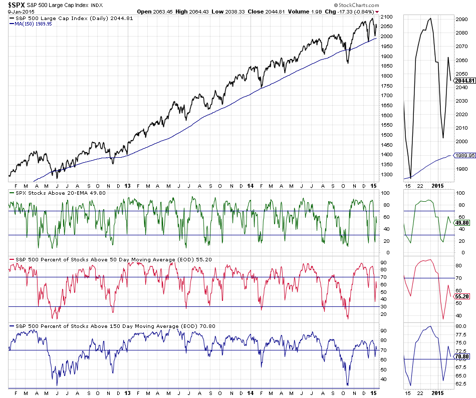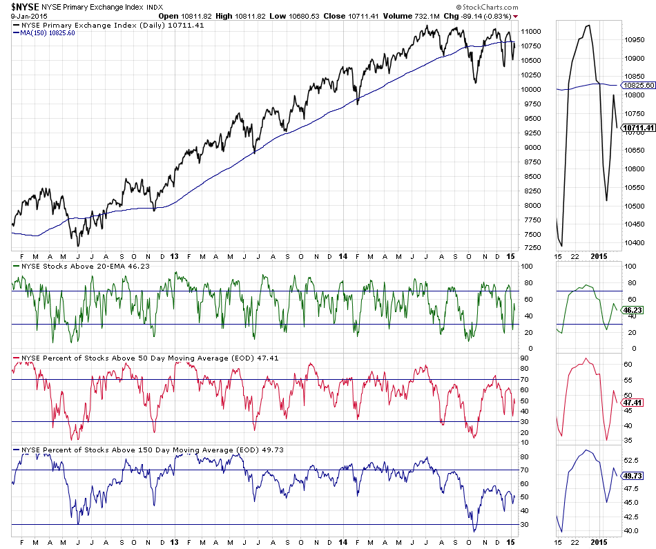 Fate does not always let you fix the tuition fee. She delivers the educational wallop and presents her own bill - Reminiscences of a Stock Operator. US Industry Sectors BreadthBelow is the data table for the Percent of Stocks Above 150 Day Moving Average in each sector which I've ordered by relative strength, with the highest to the lowest percentage in each sector. Also attached is the visual diagram of the 9 sectors and the NYSE Percentage of Stocks above their 150 day Moving Averages line chart.