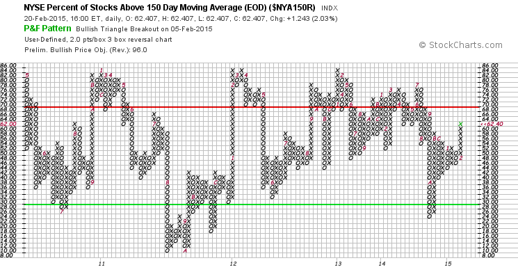 NYSE Percentage of Stocks above their 200 Day, 150 Day and 50 Day Moving Averages P&F charts