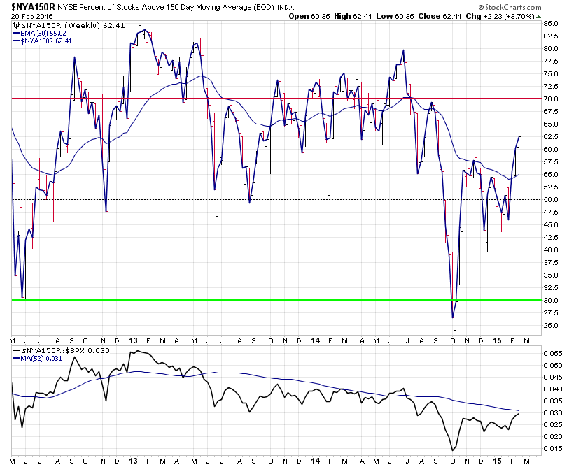 The long term measure is the % stocks with a Weekly MACD Line above the Zero Line in the S&P 1500.
