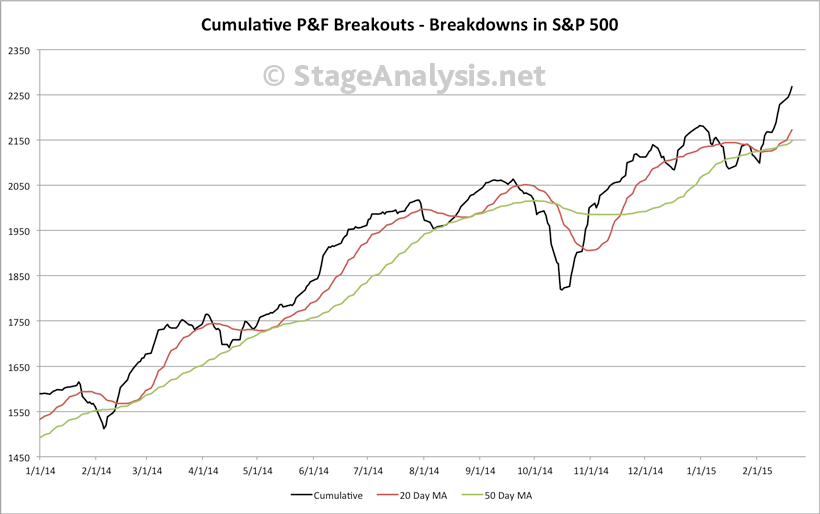 S&P 500 Cumulative P&F Breakouts - Breakdowns